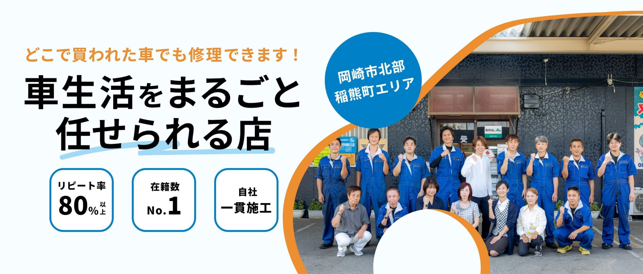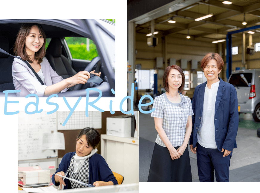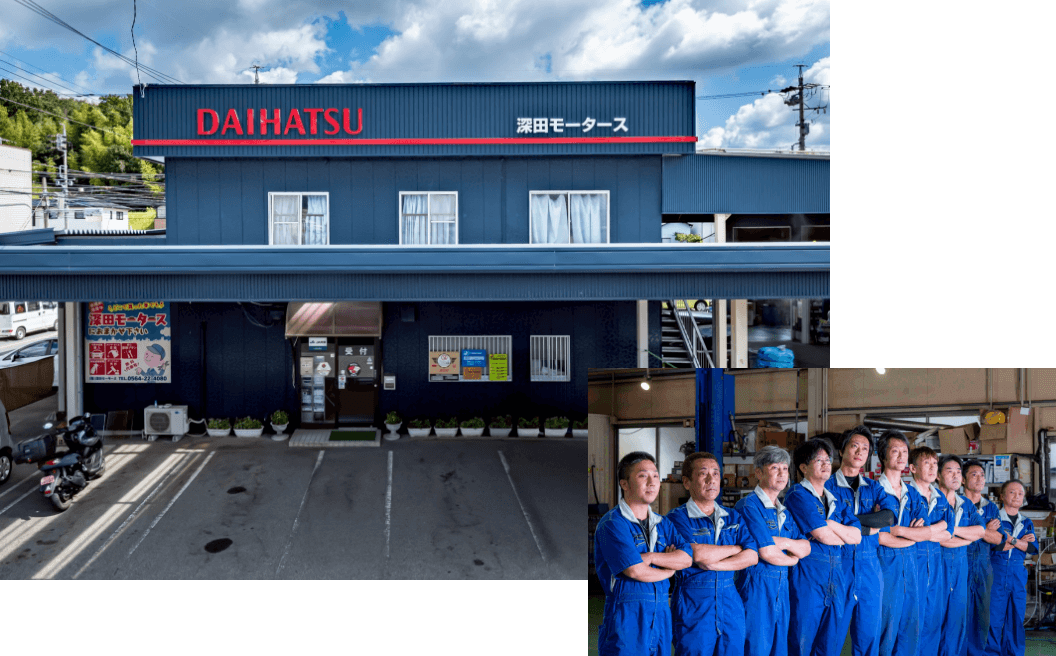 私たちの店は、車検・点検・修理・板金塗装から新車・中古車販売まで、お車に関することをすべて自社で完結できるカーショップです。