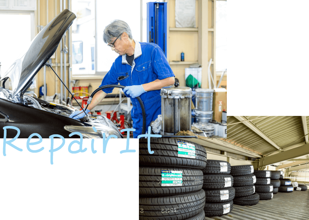 ベテラン整備士が車検・点検・修理・板金塗装をすべて自社で対応。